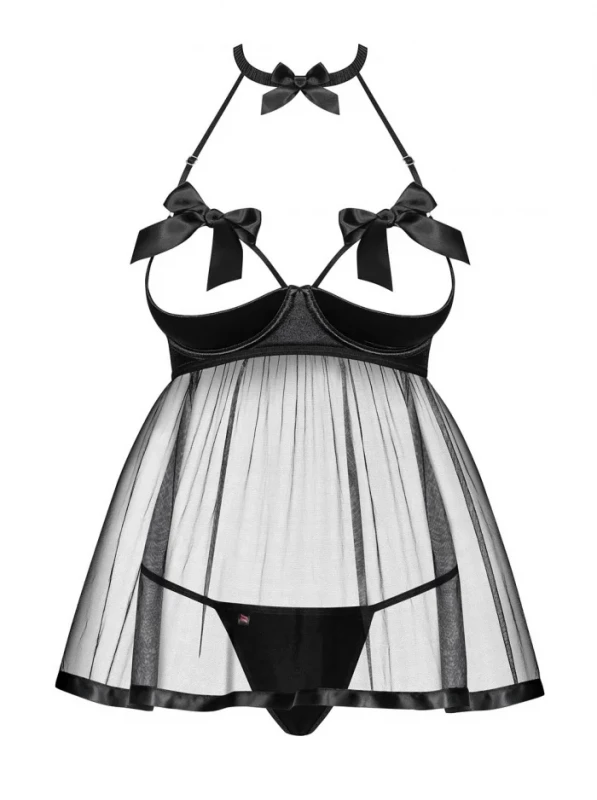 Пеньюар с открытым бюстом "Obsessive Delishya" черный, S/M