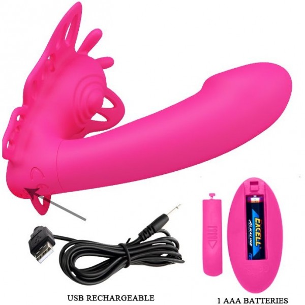 Комментарий: Прикольная удобная форма вибратора с клиторальной бабочкой. Пульт управления позволяет привлечь в игру вторую половинку. Вибрации и пульсации весьма классные!